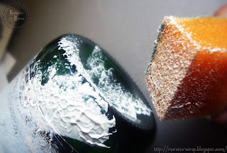 Поролоновой губкой равномерно наносим пасту на поверхность бутылки